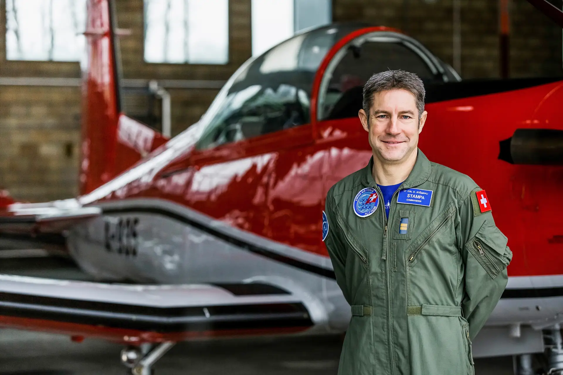 Daniel Stämpfli oder auch «Stampa», wie ihn seine Fliegerkollegen nennen, hat viel Erfahrung mit den Trainingsflugzeugen PC-7 und PC-21. Bei der Schweizer Luftwaffe bildet er angehende Militärpiloten auf dem PC-21 aus. Seit April 2016 ist er zudem Kommandant des PC-7 TEAMS, der Kunstflugstaffel der Schweizer Luftwaffe.