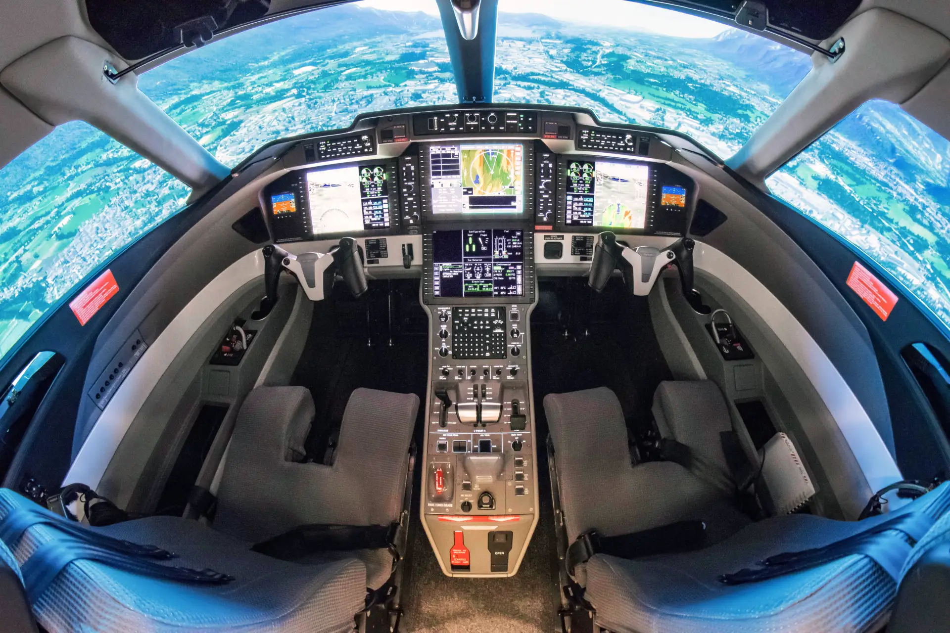 In addition to the theory modules, training focuses on learning and memorizing cockpit procedures using graphic training devices plus a full-motion simulator (Level D). The simulator offers a highly realistic environment in which to train every conceivable scenario in safety. The cockpit, the controls and all system functions are identical to the actual aircraft. A high-resolution visual system provides an amazingly true-to-life view from the cockpit, where the operating environment and topography are projected in every detail, representing any time of the day and choice of weather conditions. The departure location may be freely selected from the global map database, allowing the pilot to train specific arrival and departure procedures, for example into London City Airport (EGLC).